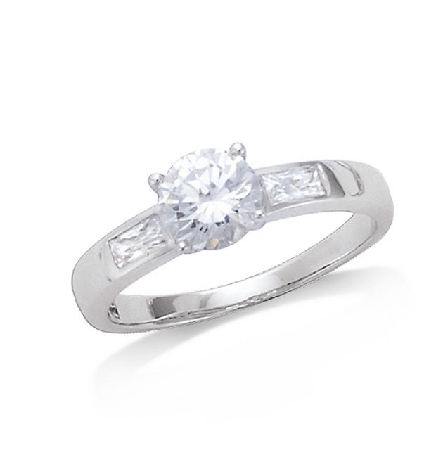 BAGUE EN ARGENT 925 RHODIE SOLITAIRE ROND TAILLE 60