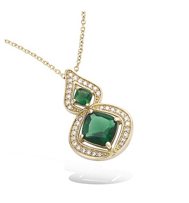 PENDENTIF PLAQUE OR VERRE COULEUR EMERAUDE