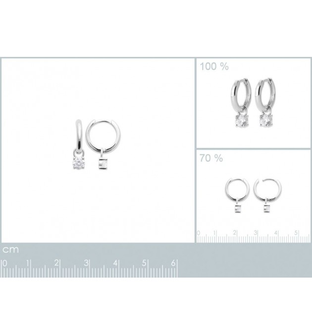 BOUCLE DOREILLE CREOLES ARGENT 925 RHODIE AVEC OXYDES BLANCS