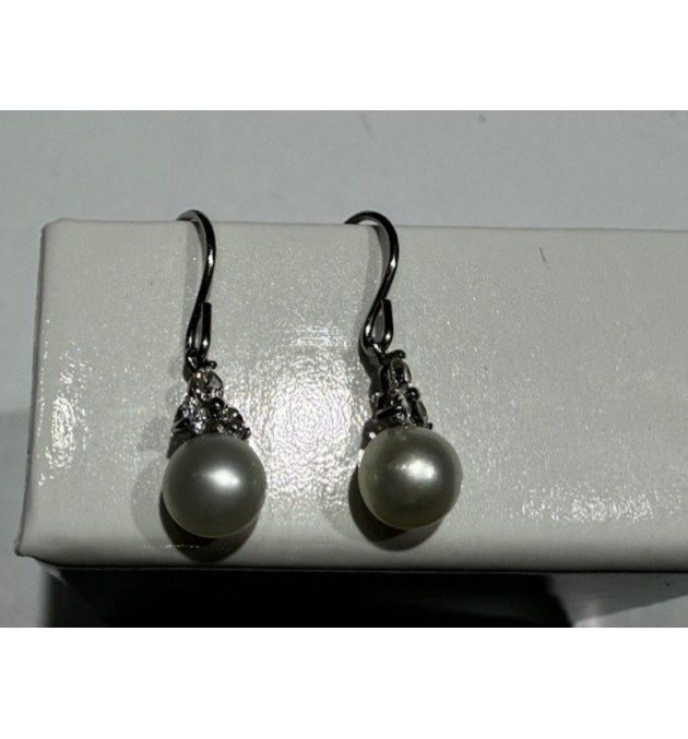 BOUCLE DOREILLE DORMEUSE OR 375/1000 0.81GRS PERLE ET OXYDE ZIRCONIUM