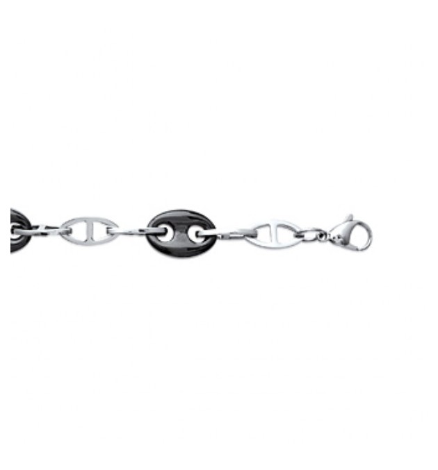 BRACELET ACIER RUTHENIUM GRAIN DE CAFE NOIR 19CM