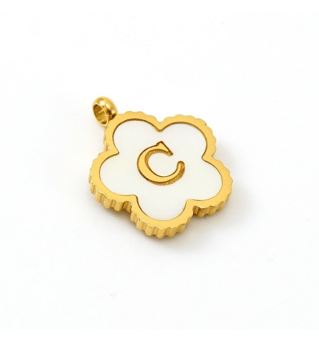 PENDENTIF ACIER FLEUR LETTRE C METAL DORE