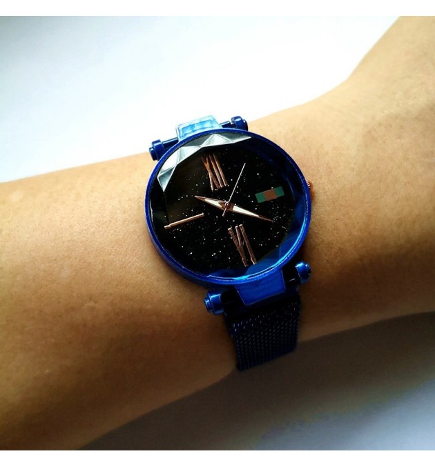 MONTRE NONAME BLEU CADRAN NOIR CHIFFRE OR GOLD