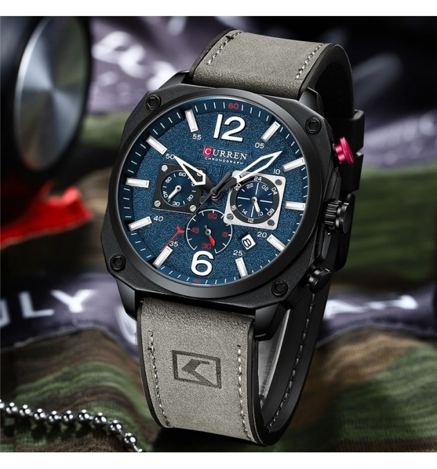 MONTRE CURREN 8398 KAKI CADRAN BLEU