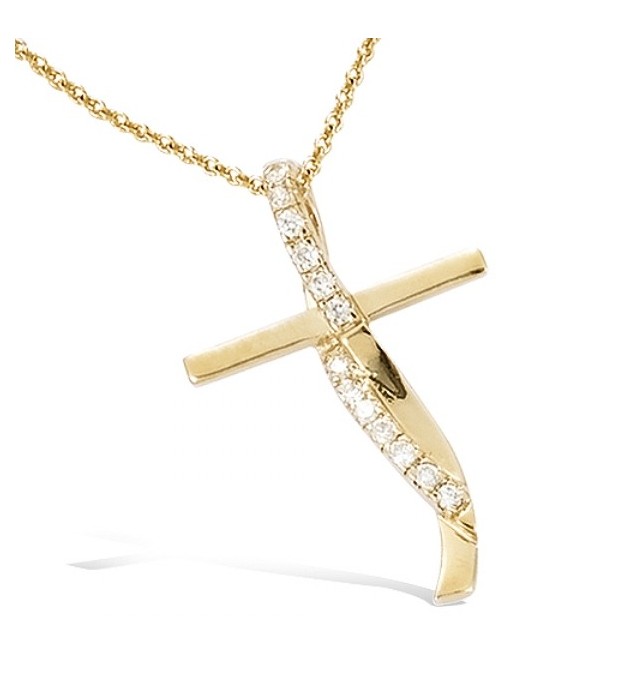 PENDENTIF EN PLAQUE OR CROIX AVEC OXYDES