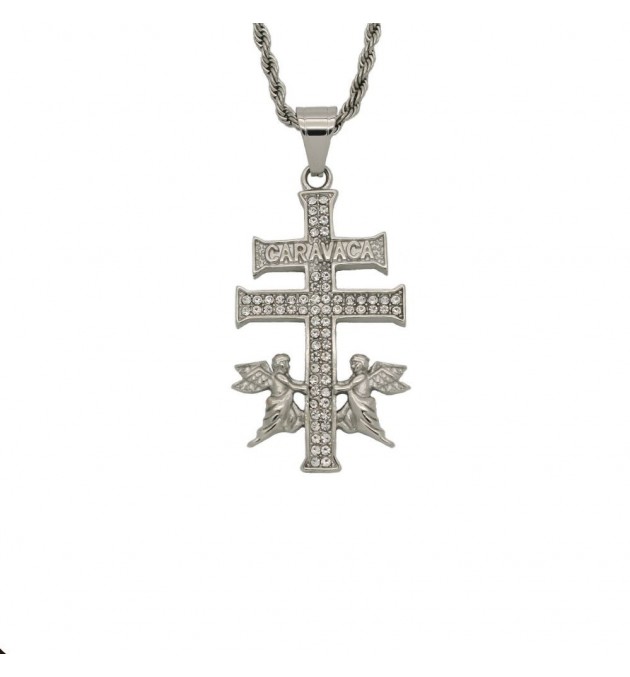 PENDENTIF DOUBLE CROIX AVEC ANGE ET OXYDE