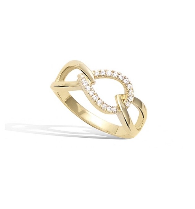 BAGUE EN PLAQUE OR ANNEAUX ENTRELACES AVEC OXYDES TAILLE 52