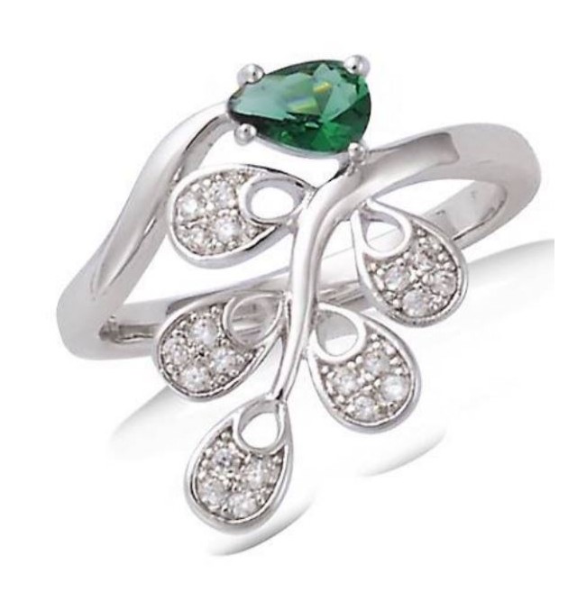 BAGUE EN ARGENT 925 RHODIE FEUILLE OXYDES BLANCS ET VERT TAILLE 56