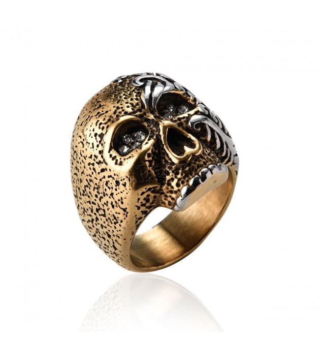 BAGUE ACIER DORE TETE DE MORT TAILLE 68