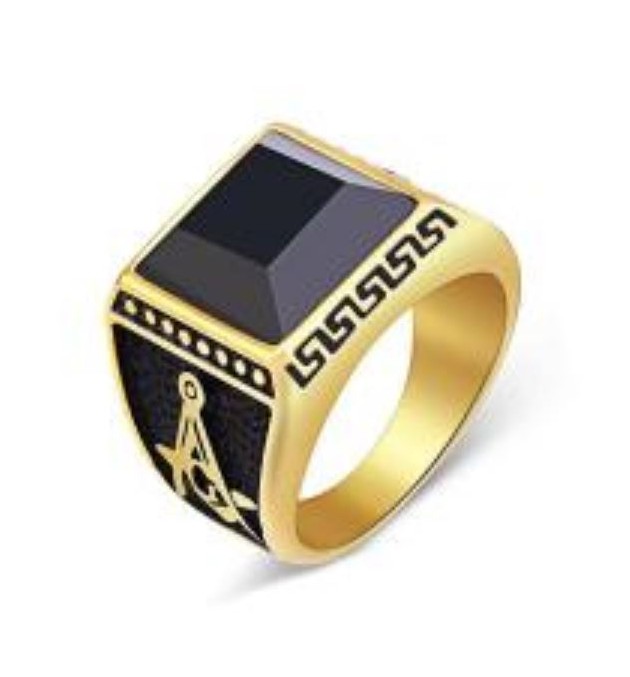 BAGUE ACIER DORE PIERRE NOIR TAILLE 58