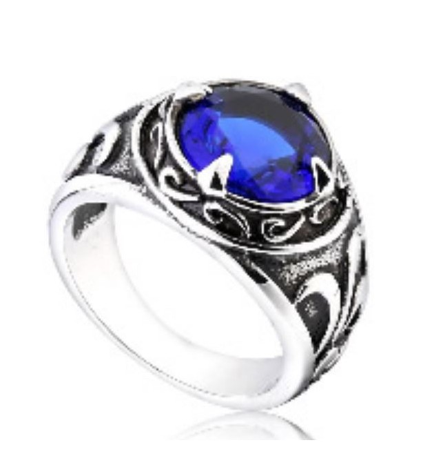 BAGUE ACIER PIERRE BLEU TAILLE 70