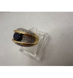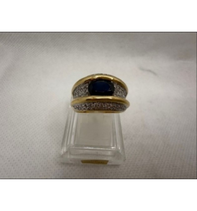 BAGUE OR 750/1000 LARGE PIERRE BLEU ET DIAMANTS 7.78GRS T56