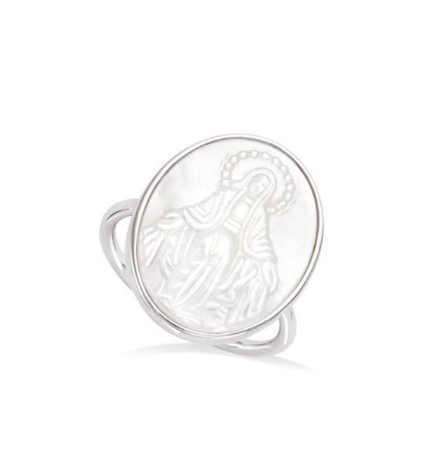 BAGUE EN ARGENT 925 RHODIE NACRE MOTIF VIERGE MARIE TAILLE 58