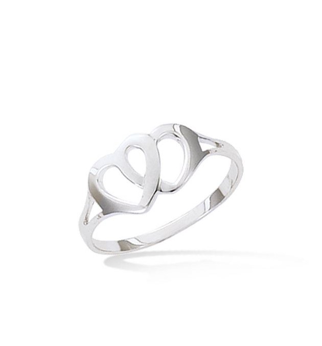 BAGUE EN ARGENT 925 RHODIE DOUBLE COEUR TAILLE 52