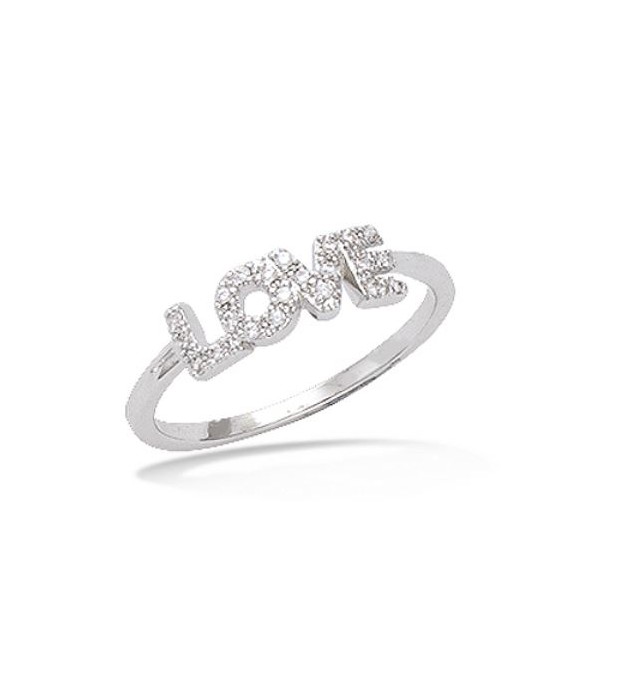 T52 BAGUE EN ARGENT 925 RHODIE LOVE OXYDES BLANCS TAILLE 52