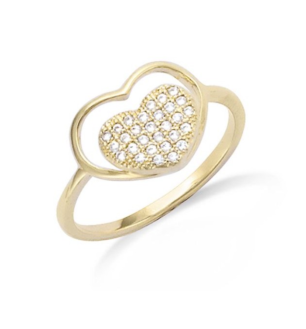BAGUE EN PLAQUE OR DOUBLE COEUR PAVE OXYDES TAILLE 60