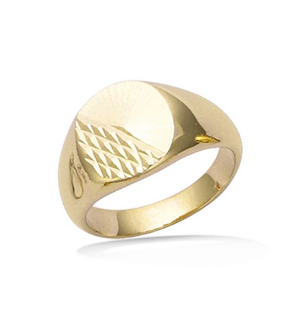 BAGUE CHEVALIERE EN PLAQUE OR OVALE DIAMANTEE TAILLE 68