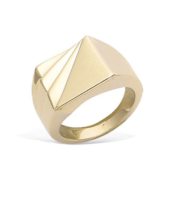 BAGUE CHEVALIERE EN PLAQUE OR CARREE SEMI DIAMANTEE TAILLE 66