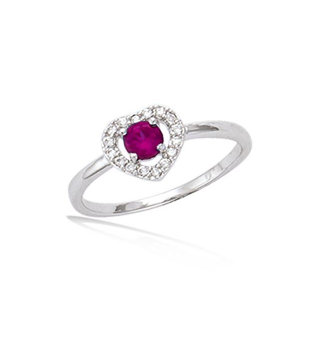 T60 BAGUE EN ARGENT 925 RHODIE COEUR AVEC SOLITAIRE COULEUR RUBIS TAILLE 60