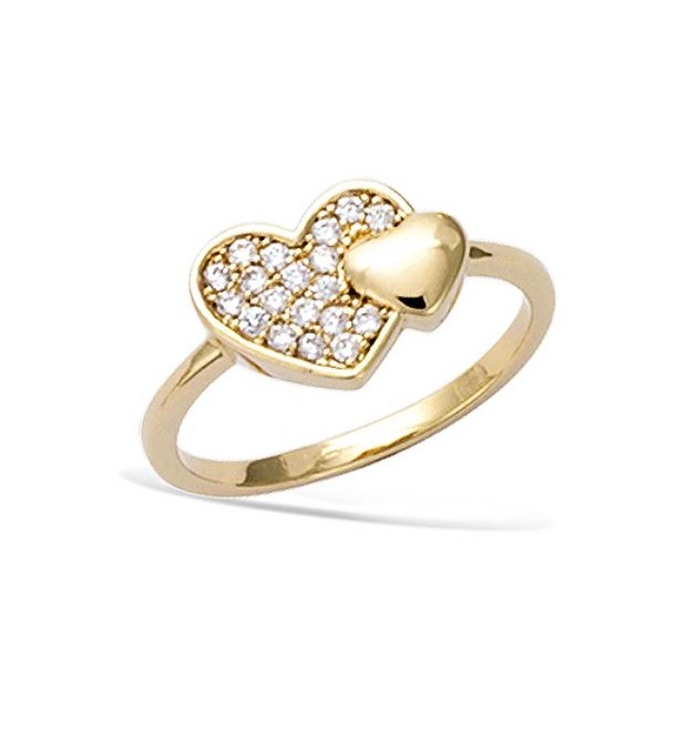 BAGUE EN PLAQUE OR DOUBLE COEUR PAVE OXYDES TAILLE 52