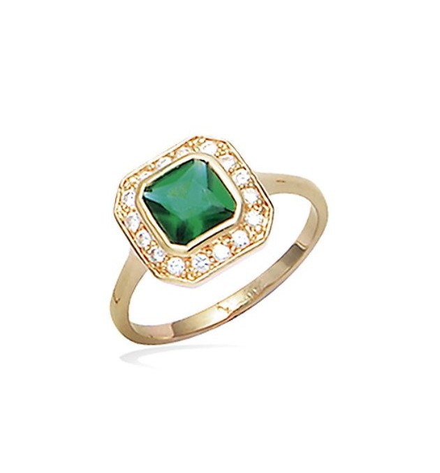 BAGUE EN PLAQUE OR OXYDE CARRE VERT ET OXYDES BLANCS TAILLE 54