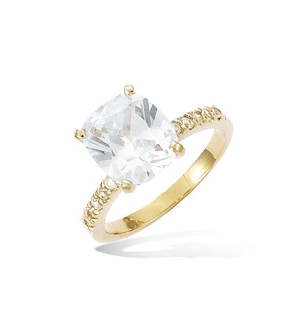 BAGUE EN PLAQUE OR SOLITAIRE RECTANGLE AVEC OXYDES TAILLE 56