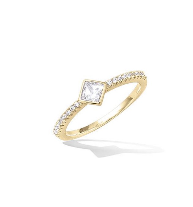 BAGUE EN PLAQUE OR SOLITAIRE CARRE AVEC OXYDES TAILLE 50