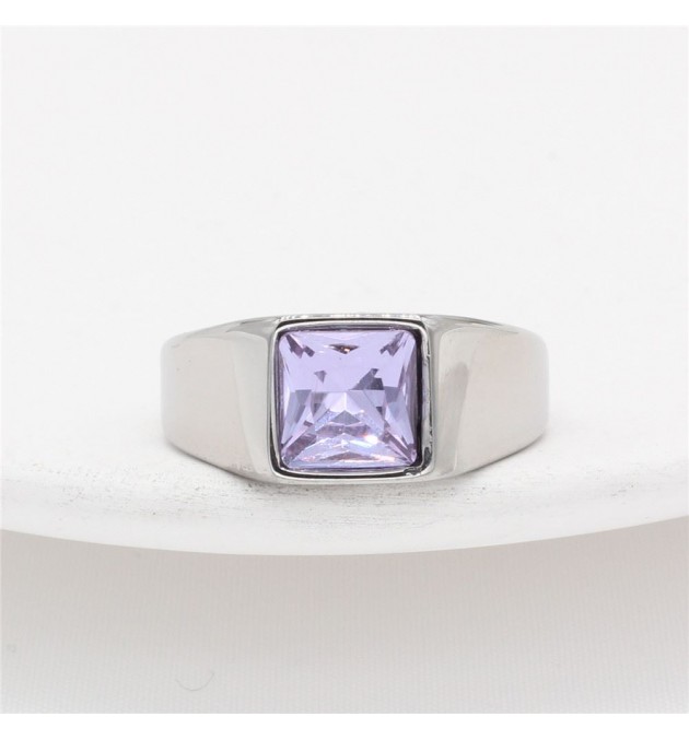 BAGUE ACIER PIERRE CARRE VIOLET TAILLE 60