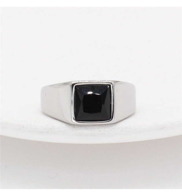 BAGUE ACIER PIERRE CARRE NOIR TAILLE 60