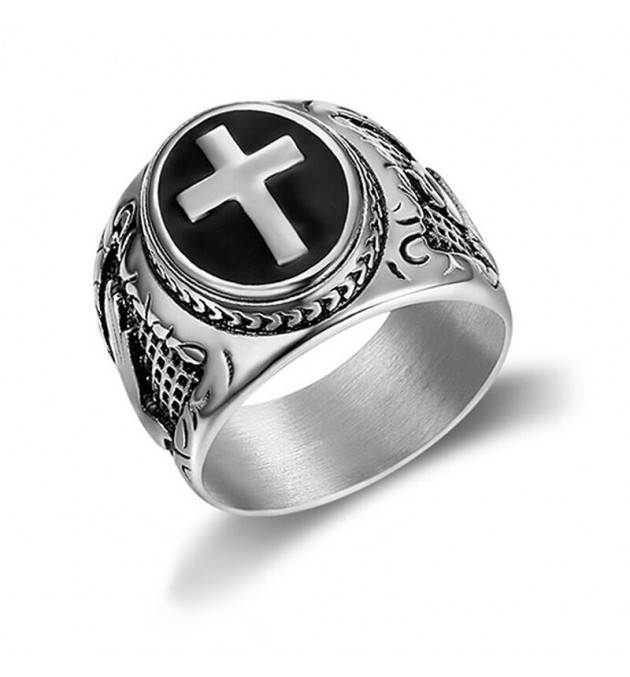 BAGUE ACIER CROIX FOND NOIR TAILLE 62