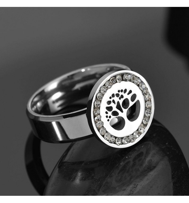 BAGUE ACIER ARBRE DE VIE AVEC OXYDE TAILLE 60