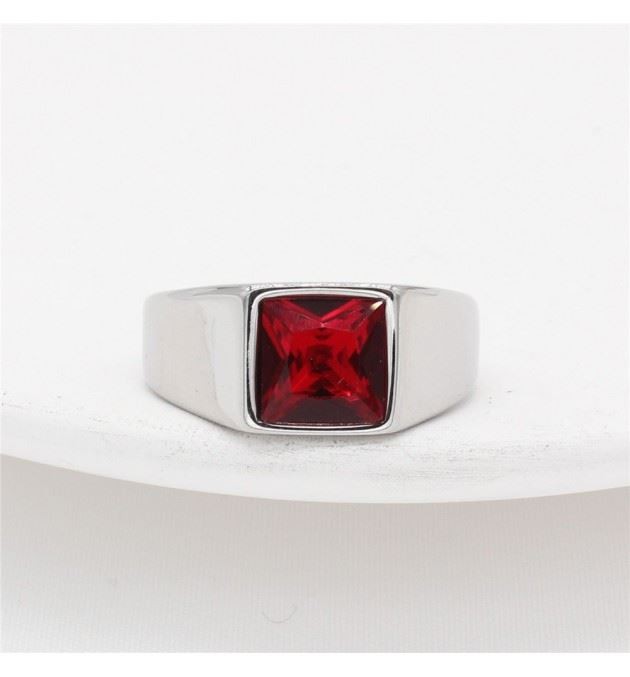 BAGUE ACIER PIERRE CARRE ROUGE TAILLE 62