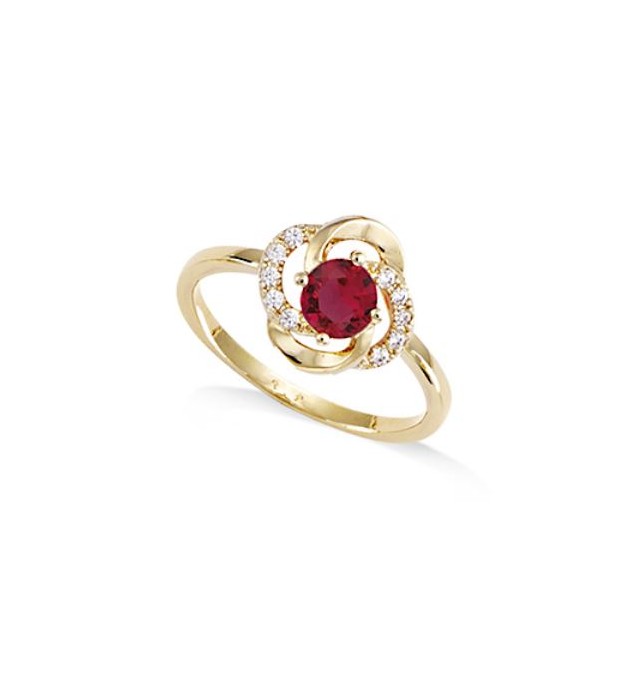 T60 BAGUE EN PLAQUE OR FLEUR ROUGE TAILLE 60