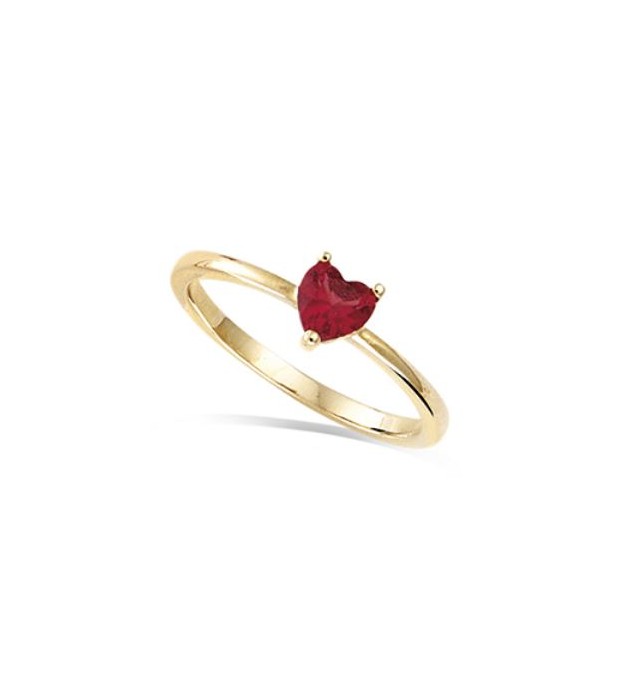 T56 BAGUE EN PLAQUE OR COEUR ROUGE TAILLE 56