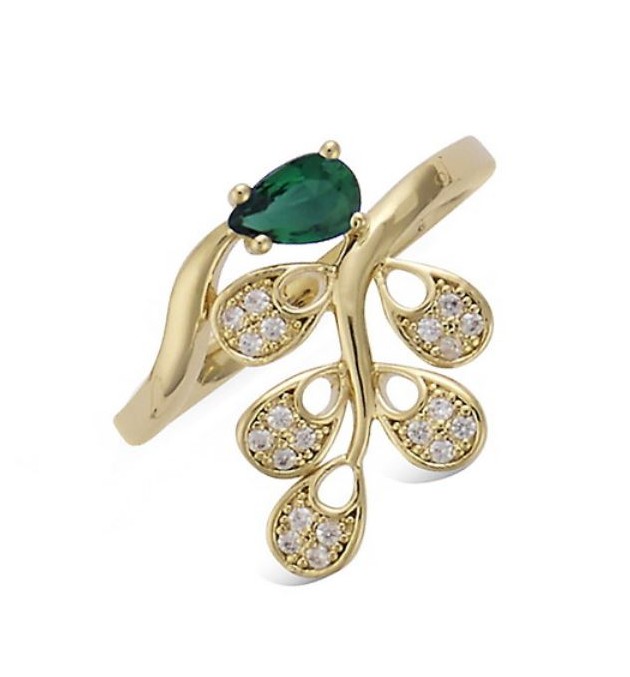T54 BAGUE EN PLAQUE OR FEUILLE OXYDES BLANCS ET VERT TAILLE 54