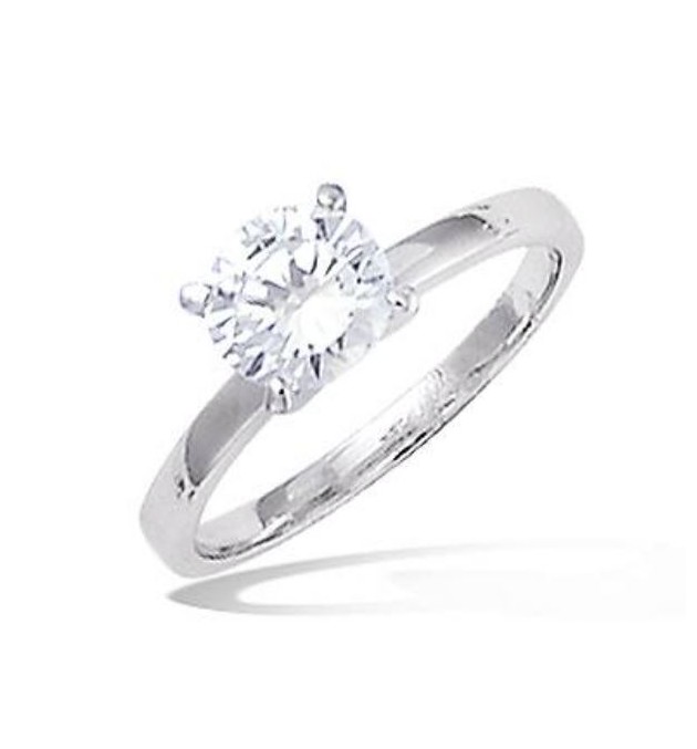 T50 BAGUE EN ARGENT 925 RHODIE SOLITAIRE OXYDES BLANCS TAILLE 48