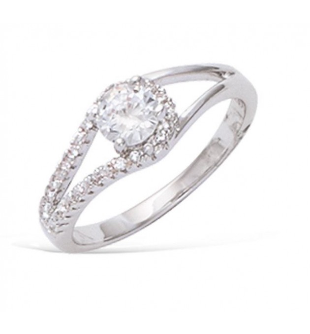 BAGUE EN ARGENT 925 RHODIE SOLITAIRE 5MM ENTOURAGE AVEC OXYDES BLANCS TAILLE 54