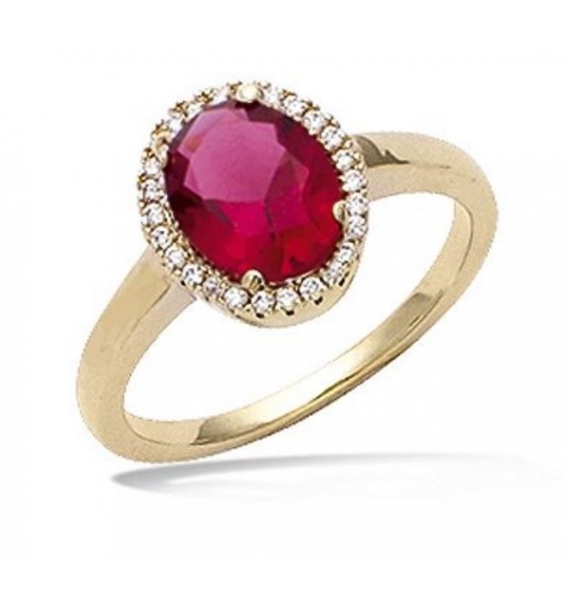 BAGUE EN PLAQUE OR FORME OVALE VERRE COULEUR RUBIS TAILLE 58
