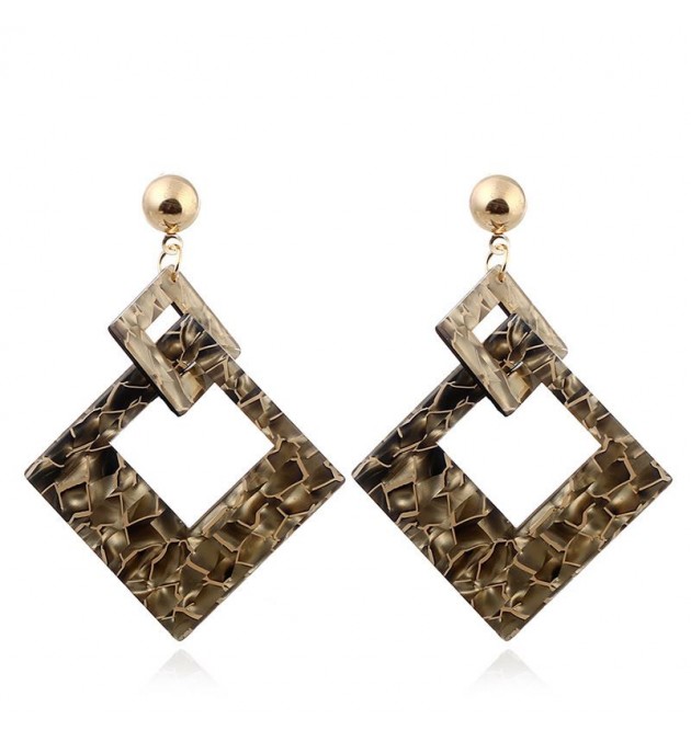 BOUCLE D OREILLE ACIER DORE CARRE LEOPARD KAKI