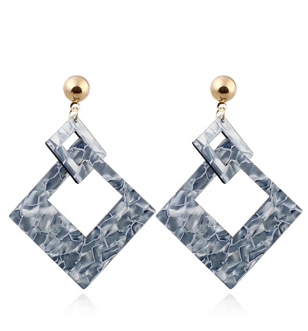 BOUCLE D OREILLE ACIER DORE CARRE LEOPARD BLEU
