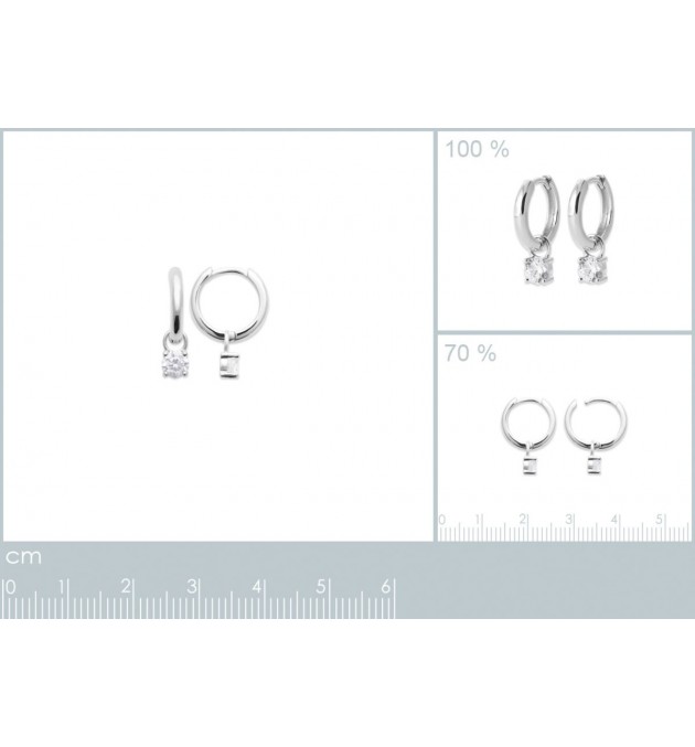 BOUCLE D'OREILLE CREOLES ARGENT 925 RHODIE AVEC OXYDES BLANCS