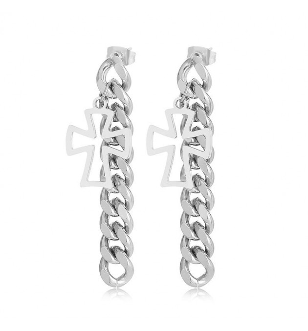 BOUCLE D OREILLE CHAIINE CROIX ACIER