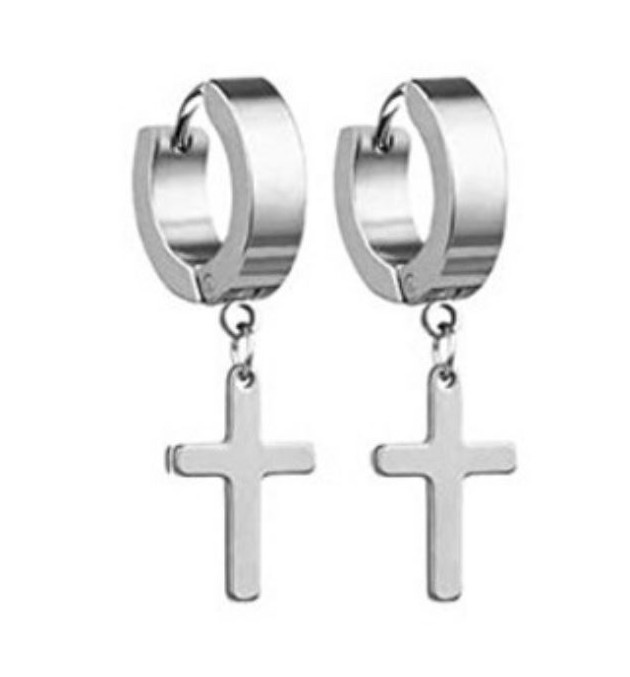BOUCLE D OREILLE CREOLE CROIX ACIER 13CM