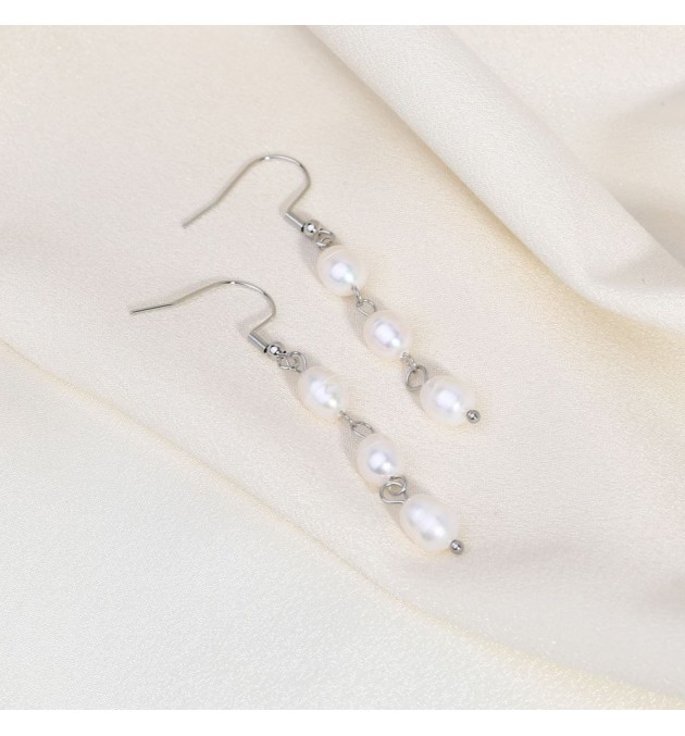 BOUCLE D OREILLE PENDANTE 3 PERLES