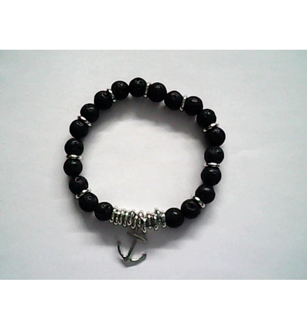 BRACELET EXTENSIBLE EN LAVE NATUREL AVEC PENDENTIF ANCRE 53MM