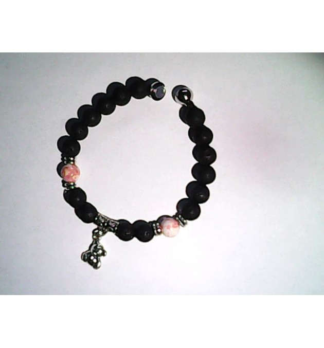 BRACELET FERMOIR MAGNETIQUE EN LAVE NATUREL AVEC PENDENTIF OURSON 185MM