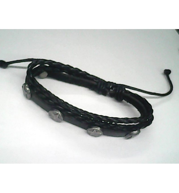 BRACELET EN CUIR CORDE TRESSE ET ETOILE