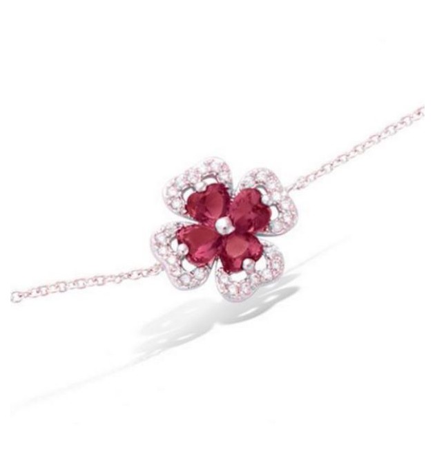 BRACELET EN ARGENT 925 RHODIE TREFLE VERRE RUBIS ENTOURAGE