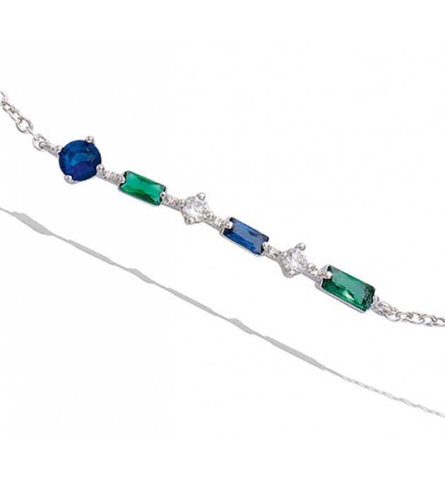 BRACELET EN ARGENT 925 RHODIE VERRE COULEUR SAPHIR ET EMERAUDE