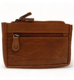 PORTE MONNAIE AVEC PORTE CLÉS EN CUIR SAFE ET KEEPERS POCHE AVANT MARRON